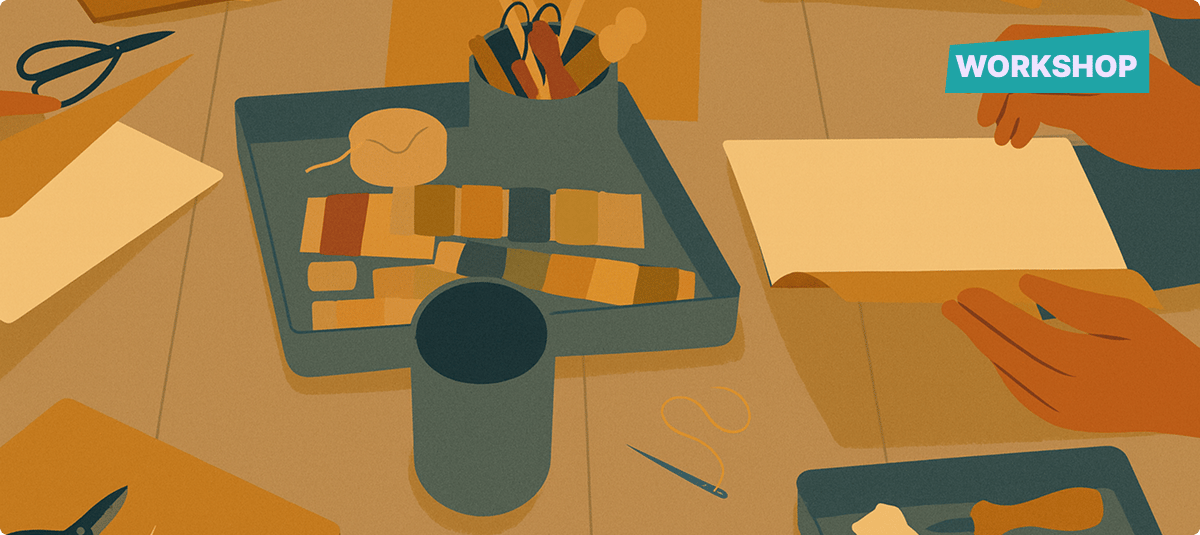 Ένα δημιουργικό εργαστήριο βιβλιοδεσίας όπου, χωρίς να χρειάζονται προηγούμενες γνώσεις, φτιάχνεις το δικό σου χειροποίητο notebook με υφάσματα, χαρτιά και πολύχρωμες κλωστές, μαθαίνοντας την τεχνική της κοπτικής βιβλιοδεσίας.