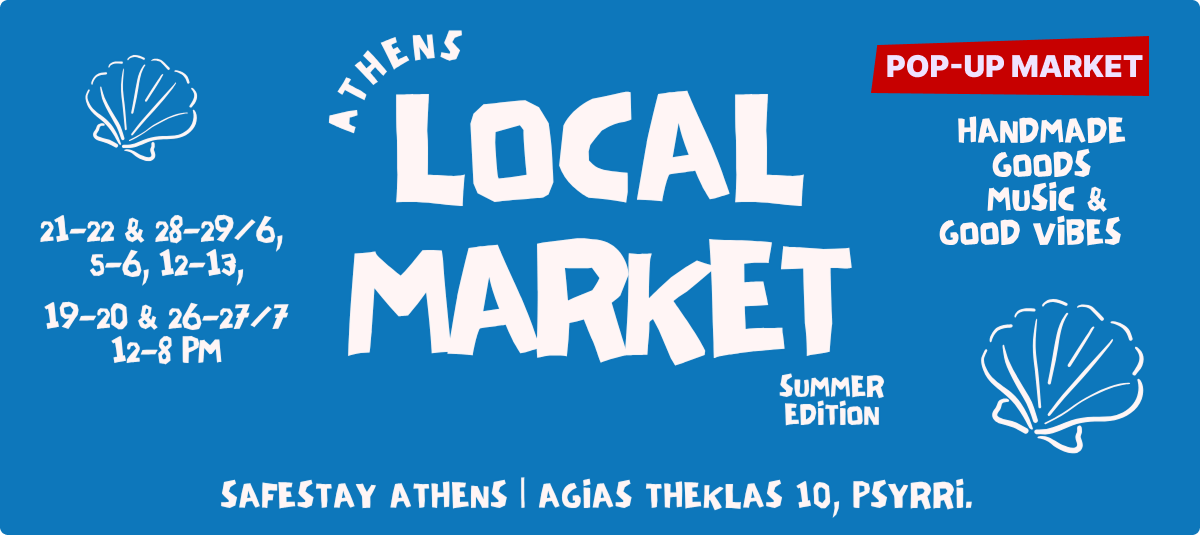 Το Athens Local Market επιστρέφει με μια καλοκαιρινή σειρά pop-up αγορών στο Safestay Athens. 90 ανεξάρτητοι δημιουργοί παρουσιάζουν σύγχρονα χειροποίητα είδη, βιώσιμες προτάσεις και μοναδικά αντικείμενα.
