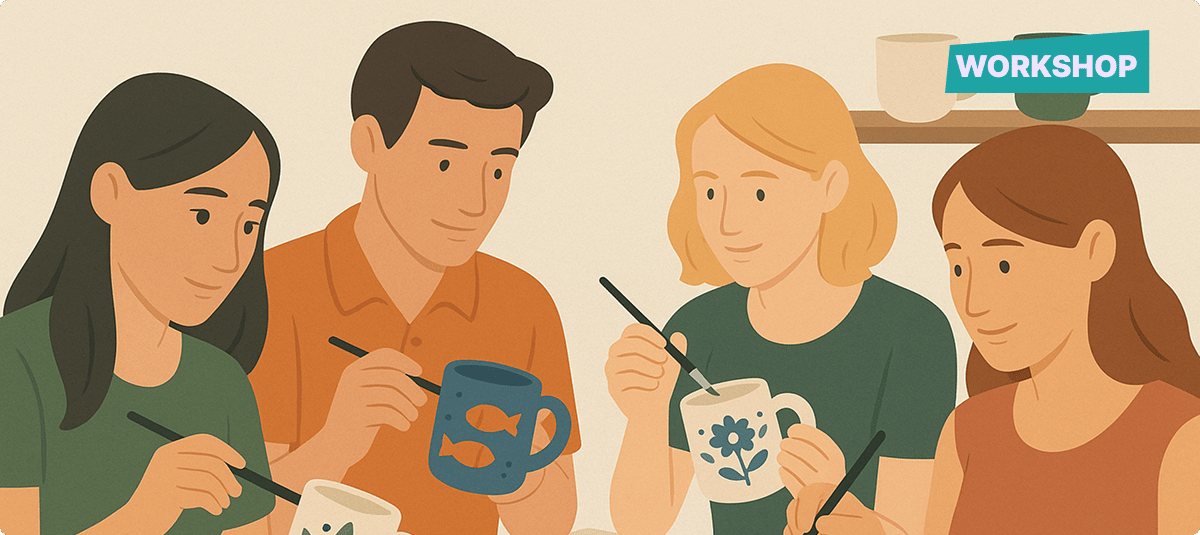 Ζωγραφίστε τη δική σας κεραμική κούπα σε ένα δημιουργικό εργαστήριο με τεχνικές για μπισκουί κεραμικά! Όλα τα υλικά παρέχονται: ψημένες κούπες, χρώματα (μπαντανάδες), πινέλα και εργαλεία. Στο τέλος, κρατάτε τη μοναδική σας δημιουργία!